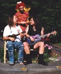 UkeTrance was the brainchild of Ukulele Freedom Front founder Mark Scott, who renamed himself Jacob Austin, and Ann's alter-ego Ann Austin. They played in cafes and on beaches around Seattle and recorded a 16-song album called "Ukenfeelit" in Ann's bedroom on a Tascam 4-track using mostly acoustic instruments and kitchen utensils. Eventually they went electric and Ann played a baritone uke through a bass amp and Jacob alternated between his Martin soprano uke and an experimental electric uke. Their shows were quite memorable and featured wacky costumes, improved music, and wild dancing. Ann left the band to focus on Pace Bend and Jacob continued to make music will fellow kindred ukulele spirits. Jacob passed away in 2015 and he is deeply missed. Ann has been known to pick up a uke now and then.